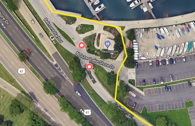 Belmont Harbor Area - there is construction on the path; to avoid disoriented cyclists and crowding of the wheels lane, we’re going to do a slight detour this weekend around the backside of the bathroom house, carefully cut through the parking lot and hop back on the trail.
